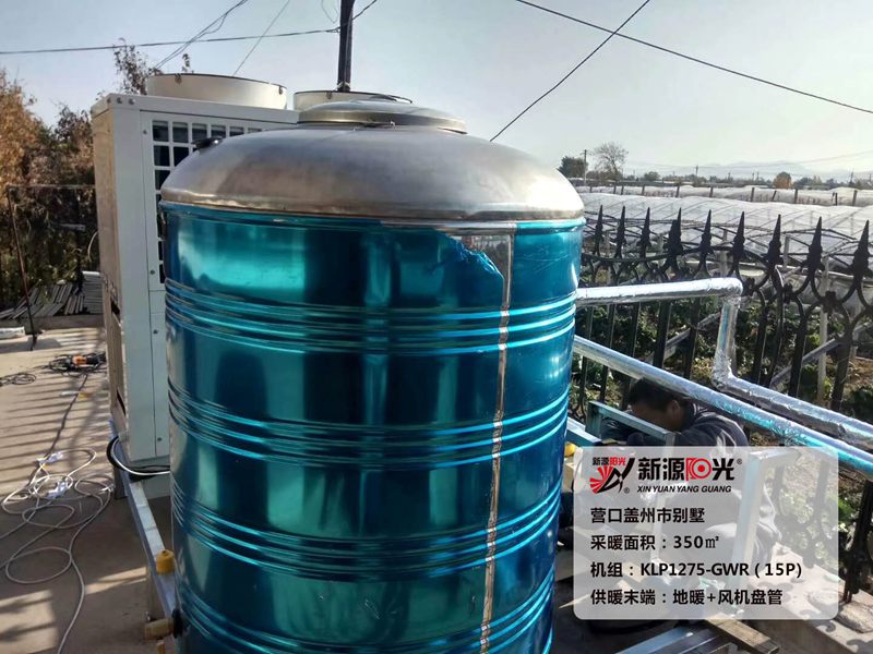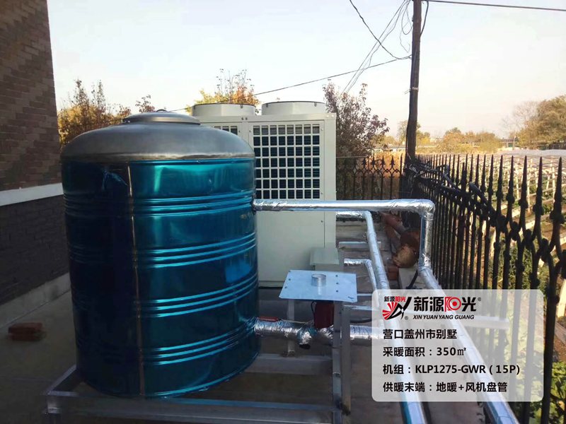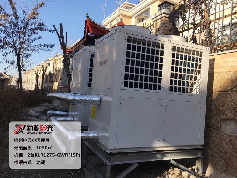 供暖面積:1050㎡         機(jī)組:新源陽光15P空氣能熱泵機(jī)組         采暖末端:地暖