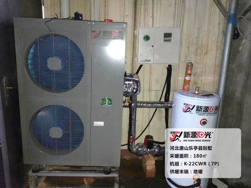 供暖面積:180㎡         機(jī)組:新源陽光7P空氣能熱泵機(jī)組         采暖末端:地暖